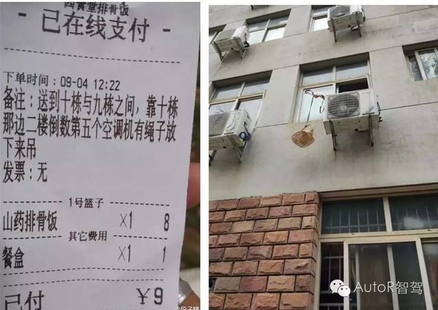 今天,智驾君在网上看到有外卖小哥分享的一件有趣的事情,大学生叫外卖用吊篮收货,事情是这样的一名大学生在食堂叫了份排骨外卖,备注中填写的收货地址是:送到十栋与九栋之间,靠十栋那边二楼倒数第五个空调机有绳子放下了吊篮。