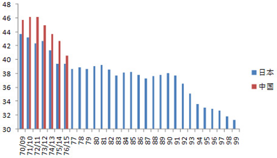 中国和日本工业化率对比