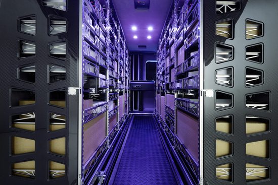 梅赛德斯解释道,厢式货车的货物处理系统是全自动的。当厢式货车到达目的地周围之后,无人机计划起飞之前,货物周边的一个机器人机械手将货物放到一个特制的盒子里,并将盒子送到天窗。天窗可以自动打开,无人机就可以取货。之后,无人机使用GPS定位,将货物投放到顾客约定的投放地点……