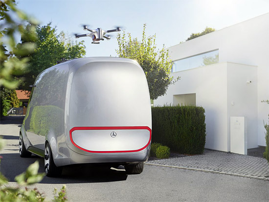 当然,车顶上可以搭载两架无人机,每架无人机的最大承重量为两千克,可以运行10公里,可以很方便的为那些“难以到达”或者“绕路”的地方送货。据悉,由于电商快速兴起,物流压力陡增,戴姆勒集团希望通过此种方式来帮助企业和消费者加快物流周转速率,提供更优质的服务。