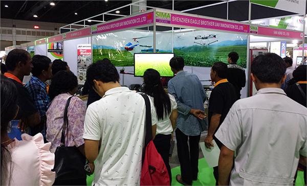 天鹰兄弟携“明星机型”:载药量17L的TY-787电动单旋翼植保无人机和载药量10L的TY-D10L电动多旋翼植保无人机参加了本次盛会,在国际区展会现场,天鹰兄弟无人机显得格外耀眼,超高的颜值、优良的性能成为本次展会的热点,被专业买家和用户、参观观众团团围住,眼尖的客户一下就认出来了,那是我们和熟悉的朋友及伙伴,它就是天鹰兄弟的明星机型TY-787电动单旋翼植保无人机,净载药17公斤,速度5-8米/秒,喷幅6-7.5米,每小时可喷洒80-100亩左右,每天可作业300-600亩;是目前技术最创新,性能最稳定,操作最简单,价格最给力,工作最出活,挣钱最轻松的机型。可广泛应用于小麦、玉米、稻田、棉花、烟叶、茶树、甘蔗、打瓜、枸杞、果园、苗木等农作物的农药喷洒,非常适合泰国等东南亚经济作物和大田作物的精准作业。