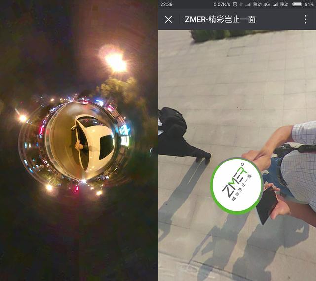 目前ZMER APP支持实时分享功能,因为考虑到码流以及展示速度问题,官方给予了实时分享压缩处理,但是整体效果不受影响。考虑到服务器问题,目前全景视频最多支持30秒上传、而照片则没有限制。因为双镜头的原因,会存在拼接缝问题,官方很聪明的给予一个LOGO把拼接缝完美的盖住还是非常不错的,有处女座情节的用户也可以把照片放到其他平台,接缝用专业全景软件进行补地就好了。
