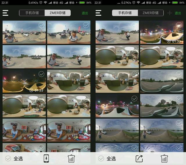 ZMER APP除了提供拍摄设置外,还提供了快速浏览功能,不仅仅是ZMER拍摄的全景,储存在本地的全景也可以在APP中进行浏览,这个包容性的功能值得点赞。把ZMER储存中的全景下载到手机储存中可以进行实时的分享,分享方式包括QQ、微信等。