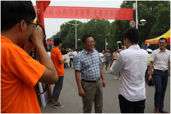 “报到手续办完的新生和家长请留步,‘我是法商人’邀您及您的家人合影留恋。”在校园里,随处可见该校大学生记者团学生热情地吆喝着新生与家长驻足合影。笔者现场看到,他们设计了“我是法商”的背景墙,空出的“人”字是留给新生的,寓意着“一入法商门,就是法商人”。现场一位家长表示:“这种形式很令人感动,为我们留下珍贵记忆的同时也体现学院的人文关怀”。