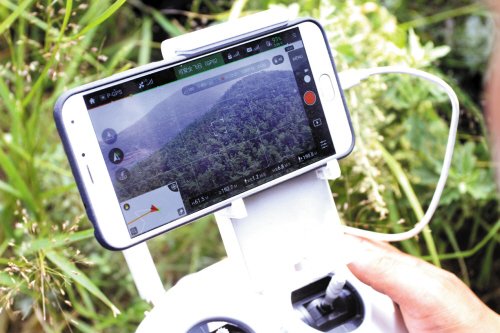 通过无人机操作屏,可以快速并清晰地观察到山林状况。无人机升空后,会即时将拍摄情况回传到操作屏。每到重点部位,它还会悬停下来,使回传的视频更清晰。毕恒涛透露,“这两架无人机拍摄镜头可360度旋转,兼具录像和抓拍功能,能够实时精确传播山林情况。”