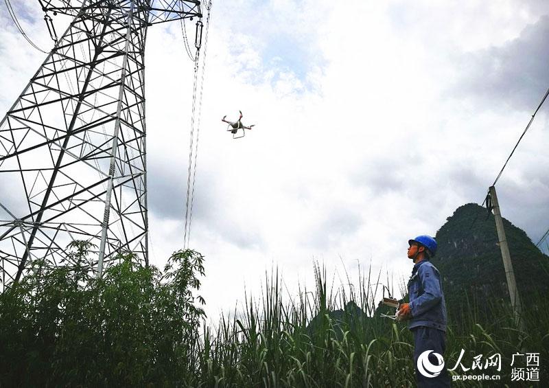 人民网崇左8月26日电 近日,崇左供电局所辖输电线路110千伏金逐庆I、II线,220千伏崇源I、II线和110千伏谊白I、II线相继受雷暴雨天气影响引发线路跳闸。崇左供电局启用无人机进行线路带电故障查找,圆满完成了故障查找任务,是崇左供电局运维人员使用无人机的一次成功的实战‘练兵’。