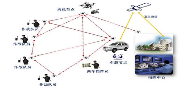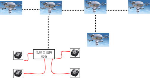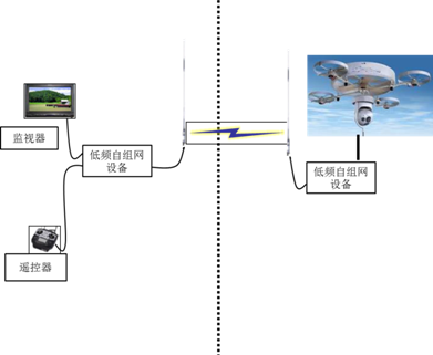 无人机编组通信,无人机通过无线自组网设备组成网状网通信链路,地面接收端可以使一个,也可以是多个,组网拓扑灵活多变。