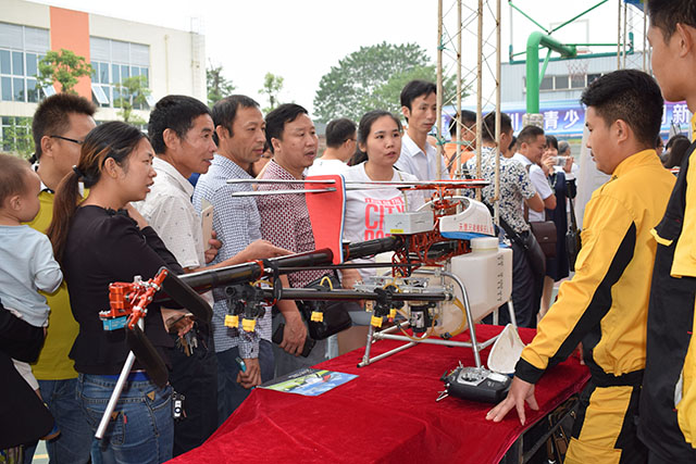 现场工作人员潘先生说,载药17KG的TY-787植保无人机具有高效省 力、安全环保、节约成本、智能化程度高,符合现代农业生产的要求,真正解决了农业大户用工难及大型机械进田难的问题,为了加速植保无人机的推广,天鹰兄弟推出了无人机的免费培训班,指导大家更好的掌握无人机喷药技术,同时为了培养更多的技能人才,天鹰兄弟子公司也纷纷与当地职业技术学校校企合作、共同办学,加快推进现代农业化进程,在场的观众听了,纷纷点赞。