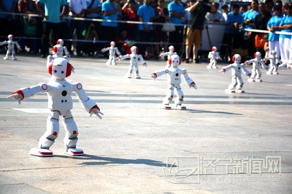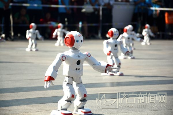 原来这里是“全国科普日”济宁主场活动的启动仪式。台前近百台机器人成方阵排列,伴着音乐“跟着我左手右手一个慢动作……”响起,机器人举起手臂,随即旋转、扭胯、转圈……,让围观群众赞叹不已。据介绍,这些机器人是珠穆朗玛(Everest)系列类人机器,与传统类人机器人不同,珠穆朗玛最具创造性的是其可以实现多关节的自由弯曲,这使其胳膊、腿、四肢指关节更加灵活,其帅气的外形、灵活的手脚,科幻感十足,赚足了人们的眼球。