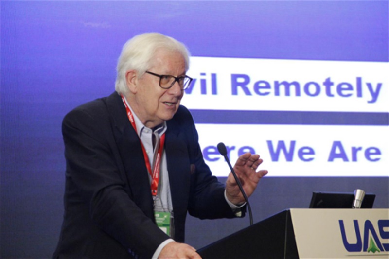 首先是国际无人系统协会会长Peter van Blyenburgh发言,他针对民用无人机市场的现有结构和未来发展趋势做了演讲。Peter回忆,八年前,他曾批评中国政府没有做自己该做的工作,没有开放地接受RPAS,也没有为RPAS做准备。但是现在很多事情已经都改变了,他非常开心看到中国已经加入了ICAO,中国在JARUS里也非常活跃。