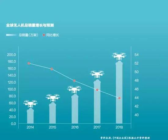 研究机构EVTank分析称,受低空逐步开放的利好,中国民用无人机未来几年将保持50%以上的增长,到2020年,全球无人机年销量将达到433万架,市场规模将达到259亿美元——跟智能手机相比,无人机确实是个小方向。