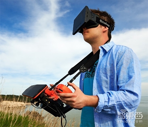 除了用手机控制,Bebop Drone 还增加了更好玩的操作方式。通过 Skycontroller 遥控组件,可以通过第一人称视角来「驾驶」 Bebop Drone ,甚至还可以连接 Oculus Rift 这样的 VR 设备体验虚拟飞行的感觉。
