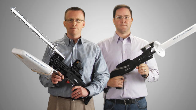 研究与开发(R&D)公司Battelle也提供类似的反无人机设备。他们的解决方案是一把外形酷似步枪的反无人机无线发射器,名为“无人机防御者(DroneDefender)”。但美国联邦通信委员会的规定决定了他们的设备只能在受控环境下进行测试,不能卖给民众。尽管Battelle不愿意透露具体哪些客户可以合法使用这些设备,但公司研究员Dan Stamm表示美国国防部和国土安全局购买了大约100把无人机防御者。在7月份,有人在美国位于伊拉克的军事基地附近看到了一把无人机防御者。Dan表示无人机防御者的工作距离达到5位数,而且造价远远小于10万美元。