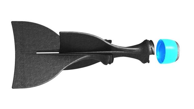 AER 简易飞行装置带有一个泡沫底座和一个相机保护盒子,除了保护 GoPro 相机免受落地时的冲击之外,还像一双翅膀一样让 GoPro 相机飞向空中并滑翔一段距离,而且即便装置落在水面上也能浮起来。