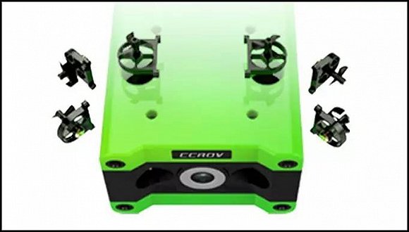 市面上的水下无人机,身上一般装有 4 个推进器,保证在水下的稳定拍摄。但CCROV 在传统 4 个推进器的基础上,再增加了 2 个。