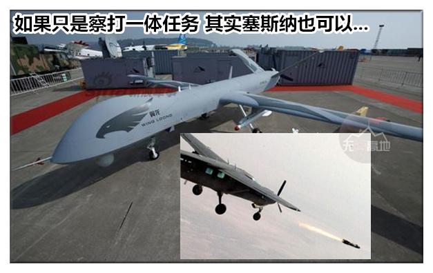 侦察任务,如果仅仅是侦察和普通打击使用,造价30万美元的“塞斯纳”轻型运动机,改装后带有夜视器材和导弹也能完成相应的察打一体任务。但是这样至少要培训2名能够飞上