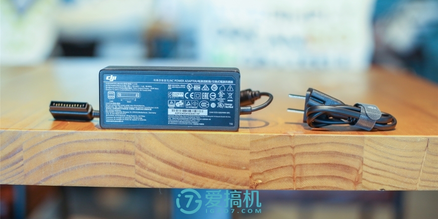 除了Mavic Pro无人机本体和遥控外,配件只有遥控的转接线和充电器,后者可以同时为遥控和无人机电池充电,输出功率分别的5V/2A和13.05V/ 3.83A(折合约50W)。