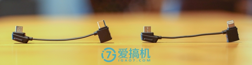 Mavic Pro的遥控按键数目和精灵系列接近,摇杆和按键都有相应的缩小,阻尼和防误触设计都挺好,但摇杆偏短,可能不太合很多传统航模玩家的口味。针对苹果和安卓手机,遥控左侧的手机连接线可以自行更换,但这也是遥控的充电接口,充电时会多个拔插的过程。