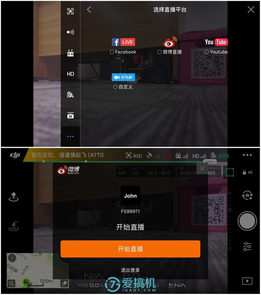 竖拍模式与直播分享:一体化云台除了体积优势还换来了一个竖拍模式,机器画面可以像手机一样立起来进行拍摄,多了纵向构图后拍马路或者大楼立面会方便很多。而直播平台默认支持facebook、youtube和微博直播,斗鱼熊猫等平台则通过填入直播间地址进行连接。