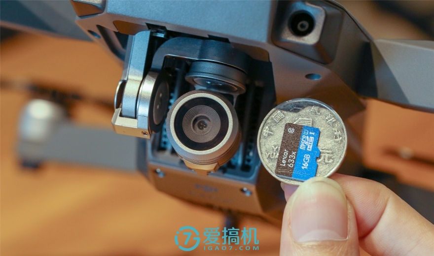 云台减震与其他:Mavic Pro身上有破纪录小的一体化三轴机械云台,为了配合超小的云台和摄像头自重,摄像头排线和缓冲垫圈都非常细,而且可以让云台进行大角度的倾斜,以抵消一部分机身的倾斜。