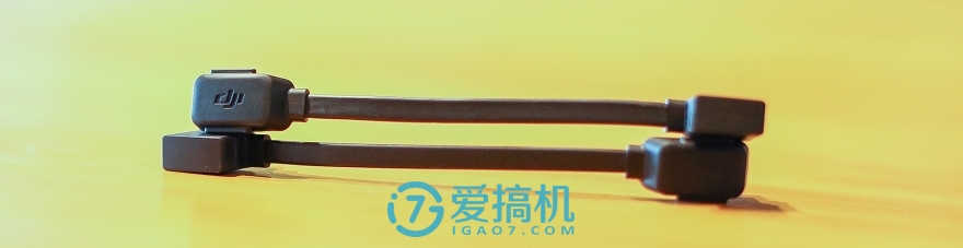 遥控有安卓的mirco-USB和苹果的lighting接口的两种转接线,另外一端是为了方便用户分辨而定制的方形mirco-USB接口,充电时可以使用普通数据线进行连接。