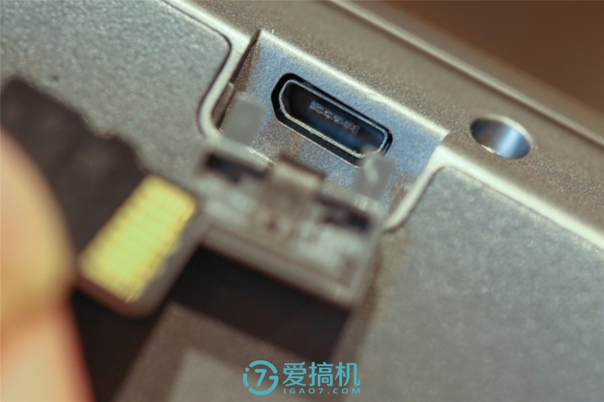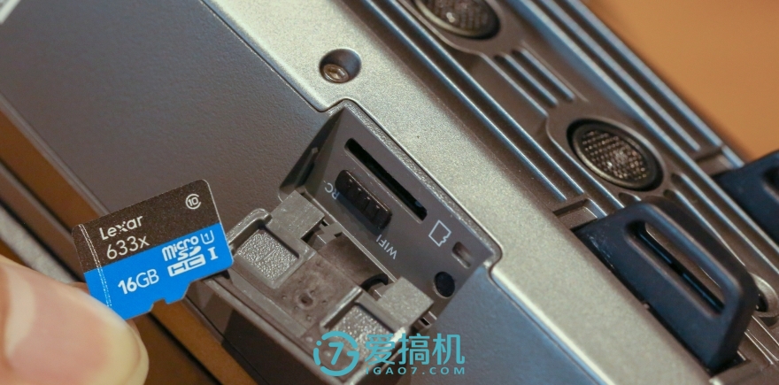 机腹两侧的滑盖下分别是TF卡槽、连接模式切换拨杆以及调试用的mirco-USB接口,TF卡槽旁边还隐藏了一颗状态指示灯。