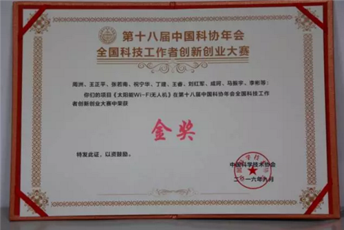 为什么要说它是网红?因为在第十八届中国科协年会全国科技工作者创新创业大赛上,由西工大周洲教授团队研制的“太阳能Wi-Fi无人机”一举夺得金奖,引起了社会各界的一致关注。它的亮点是将太阳能、无人机、无线路由器三个社会热点相结合,采用太阳能为自供给能源,太阳能无人机为持久留空平台,与Wi-Fi技术相结合,构建空中基站,通过单机或者多机基站进行区域覆盖,形成灵活的移动互联网空中宽带通信基础设施。