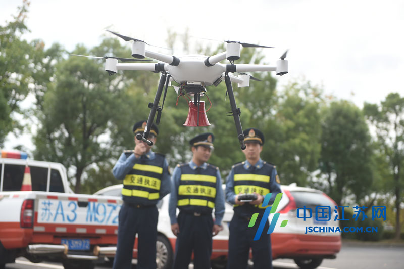 2016年10月10日,南京公路路政四桥大队的路政人员熟练地操作无人机升空,在四桥进行巡查作业。据了解,南京公路路政部门开始运用无人机巡查公路和桥梁,同时对无人机的运用还深入到南京公路建、养、管等各个方面。从今年开始,以南京公路路政四桥大队为试点,以无人机装备作为环保节能的空中信息采集平台,展开了无人机在公路路政及养护工作中的应用,目前已初见成效。