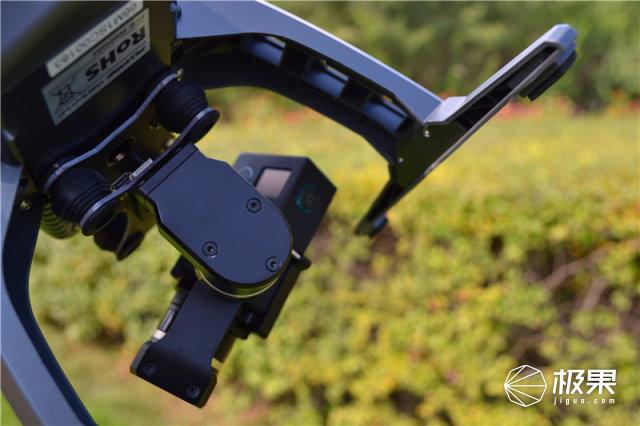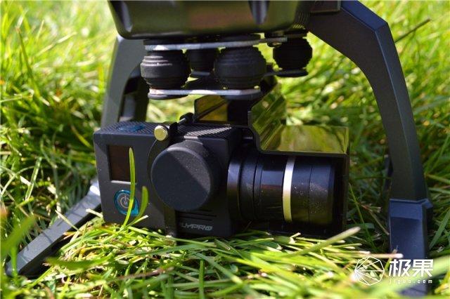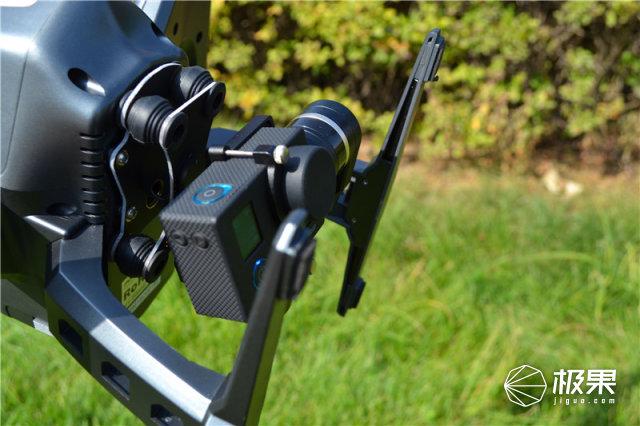 FLYPRO飞豹XEagle云台支架通过4个硅胶球与机身连接,云台的主要部件采用了金属的材质,除了可以更加牢固以外,也大大增加了散热,提高稳定性。