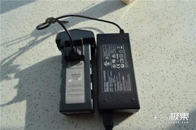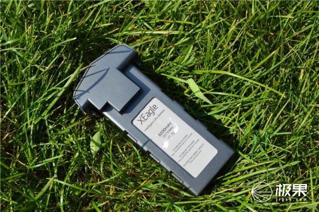 FLYPRO飞豹XEagle搭载了一颗5200mAh的电池,官方数据给出,可以让无人机保持20分钟左右的空中飞行时间。电池仓采用了抽拉式样的设计,在电池正面设有电源指示灯以及电源开关。