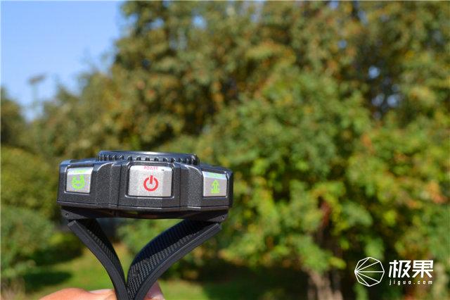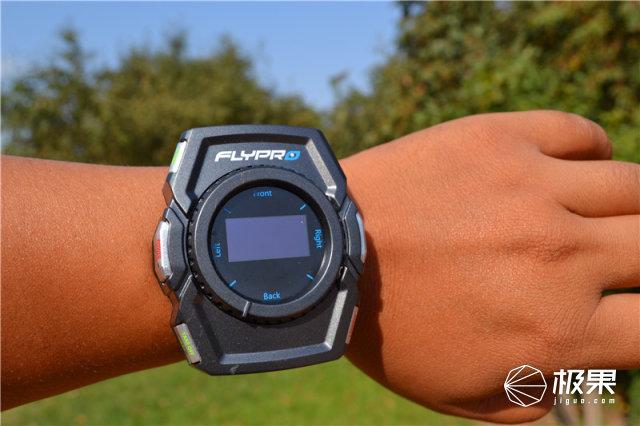 XWatch遥控手表的外观非常硬朗,男人味十足,宽厚的硅胶表带,布满了纹路,戴在手腕,非常舒适。在智能手表的正面是一块黑白的表盘,上面可以显示无人机的运行状态,连接卫星信号、状态等数据。在表盘的圆环是设有一颗可以旋转的方位调节旋钮,侧边是常用的功能按键,无人机的操控全靠这些功能按钮。笔者在试飞的视频里做了详细的介绍。