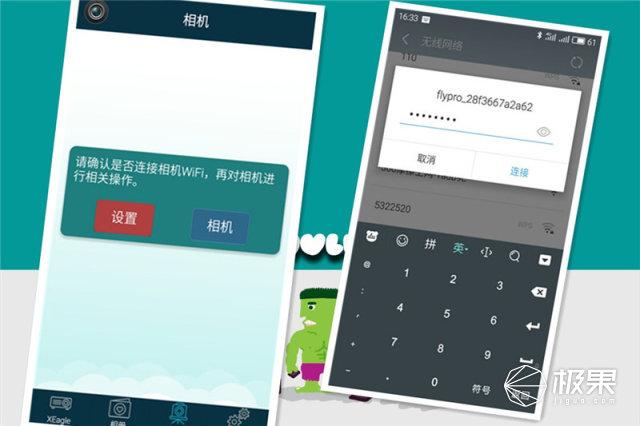 通过官网下载Flyprocam官方App,可以通过WiFi与相机实现联动连接。连接方法也很简单,通过相机的按键调整至WiFi连接模式,打开手机App连接WiFi名称为Flypro-数字的WiFi信号,完成连接。打开App主页,可以通过App观看相机所拍摄的视频、相册。