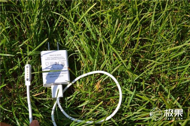电源盒里是放置了无人机和遥控智能手表的充电器,和一套无人机的备用垫脚。无人机的电源输出参数为12.6V/4A,共50.6W,采用了无人机所常用的双脚插头,无人机端打开电池盖取出电池适配充电。
