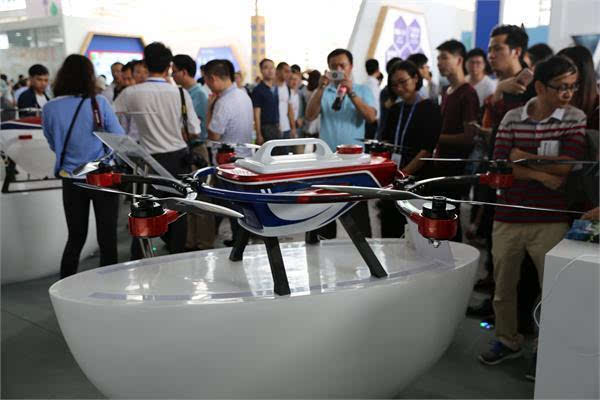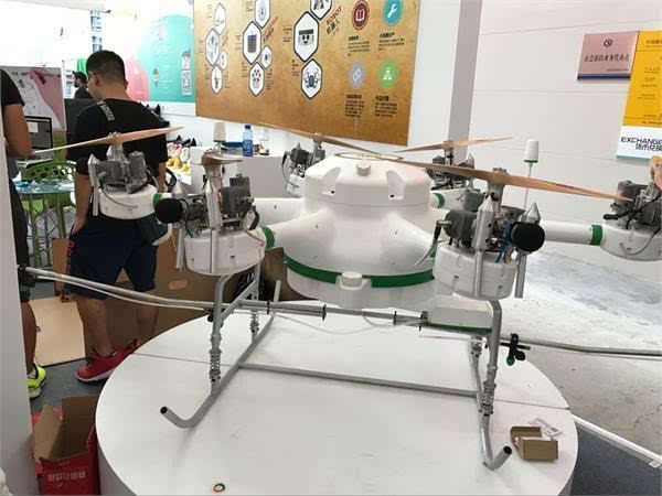 会场上,有大疆公司推出的全球首款可用于控制拍摄的一体化小型多旋翼飞行器——PHANTOM3航拍无人机—,有世界上第一款商业化、实用化飞行包——光启飞行包,有年轻团队研发的四旋翼烧油无人机,也有各种大型农用植保机、常见的航拍机、穿越机。