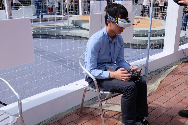 推广必然少不了观众互动的环节:观众可以带上 FPV 眼镜,同步感受选手飞行视角。