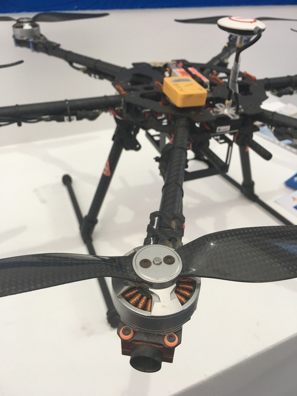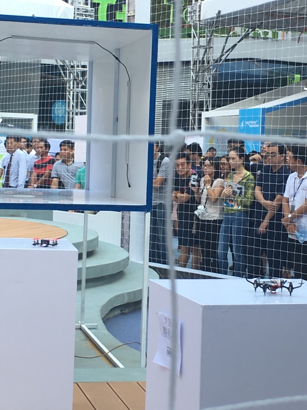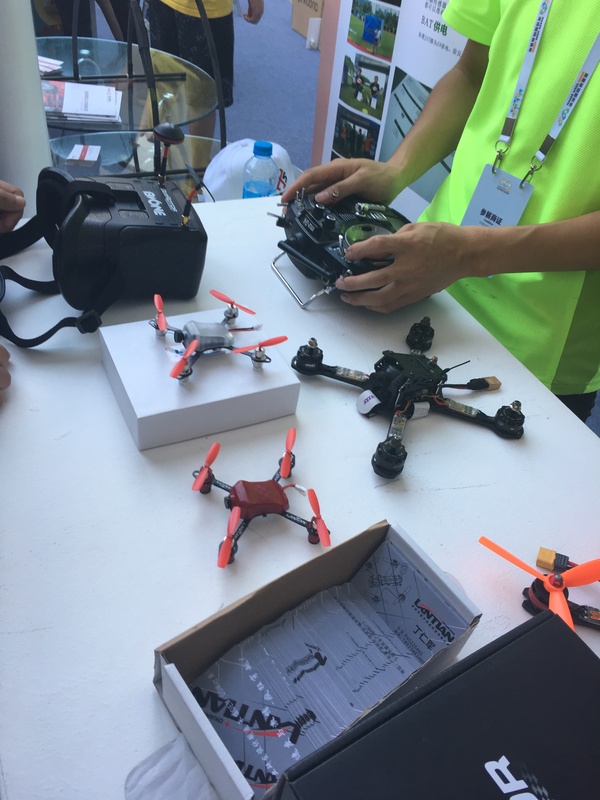 进入主会场,我们惊喜的发现,主会场里展示最多的科技成果就是无人机及其周边产品。据会场工作人员介绍,在无人机展演区里,共有国内外16家无人机相关厂商参展,展演机型多样性广,从常见的消费级航拍机、用于竞技的FPV穿越机、大型农用植保机到工业级无人机,另外还有图传、全景摄像、视频眼镜等无人机周边产品,行业内品种非常齐全。