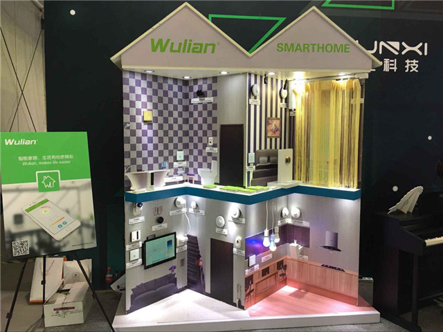 物联网创新企业Wulian带来的智能家居系统。这套系统通过无线技术将Wulian旗下多款传感器、智能门锁、网关摄像机等设备连接起来,支持手机、智能电视以及微信应用来控制,可让我们随时了解家中设备的状态和安全情况。例如,基于地理位置感知,在我们离家一定距离时,家中的空调等设备自动开启;通过摇一摇手机,启动影院模式,调暗灯光,窗帘关闭;手机远程、指纹、密码、NFC标签开智能门锁等。