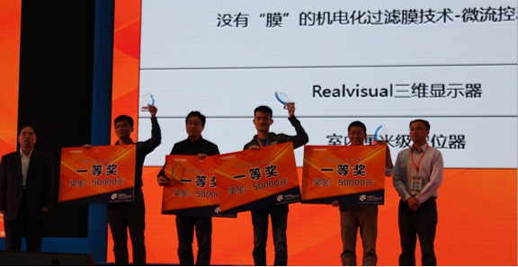 10月21日,在广东(潭州)国际会展中心,总决赛现场,决出创意类一等奖 :生命救援的先驱(冠军,广西赛区)、没有“膜”的机电化过滤膜技术-微流控动态液膜、Realvisual三维显示器、室内厘米级定位器四个项目;同时决出应用类一等奖:工业六关节机器人智能控制(冠军,广东赛区),DiMetal系列工业级金属3D打印机,MAD GAZE AR 智能眼镜(香港),制造业的数据感知和计算智能,微型无人机航测及航测宝等5个项目。