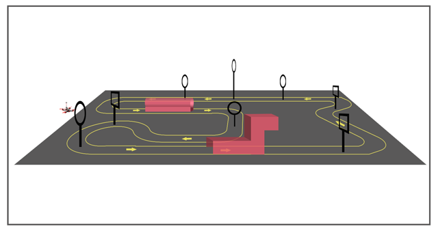 参赛者操控无人机依次穿越障碍门沿赛道行驶一周,选手中间可以落地一次,从指定区域起飞,按在规定路线穿越所有障碍门,在指定区域内降落,用时短者胜利。
