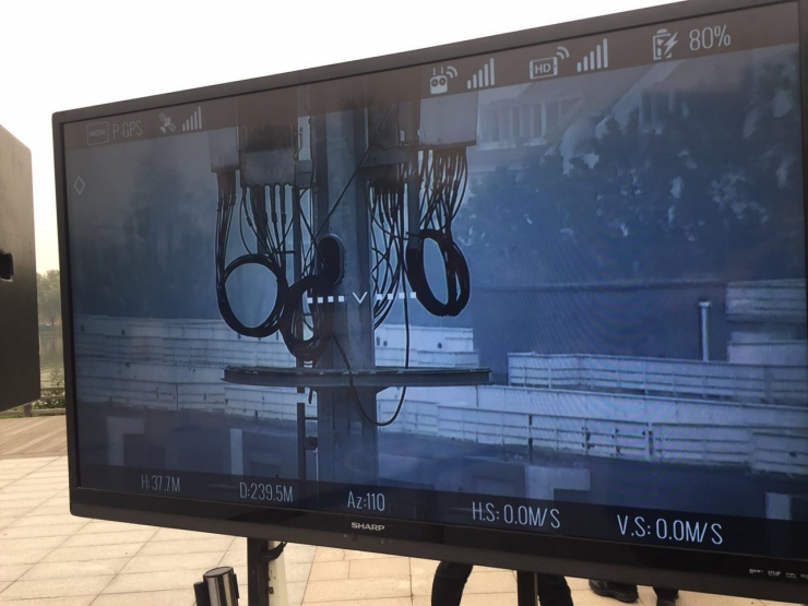 发布会结束后,大疆安排了产品演示环节。在工作人员的操作下,搭载了大疆飞行平台M600的禅思Z30在一座电力塔50米前进行1到30倍的光学变焦,在30倍光学变焦下,相机拍摄到电力塔非常清晰的细节画面。而最为让雷锋网印象深刻的,还是画面的稳定性,虽然在镜头在推近电力塔,不过画面却丝毫未有抖动。