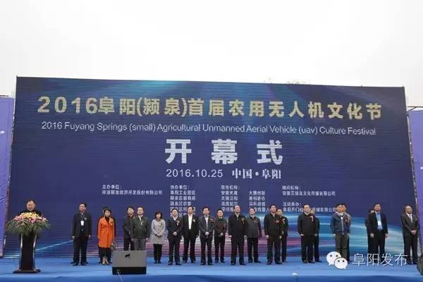 10月25号上午,2016年阜阳(颍泉)首届农用无人机文化节在祥源·阜阳生态乐园举行,市委书记于勇、副书记卢仕仁、副市长刘树生以及30多家国内顶级无人机生产销售企业代表出席开幕式。
