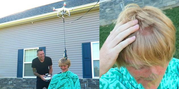 但是,歪果仁的脑洞可不仅仅如此。此前,YouTube红人Roman Atwood在网上放出一段视频,其中记录了用无人机牵引剪发器来给帅哥剪头发的过程。