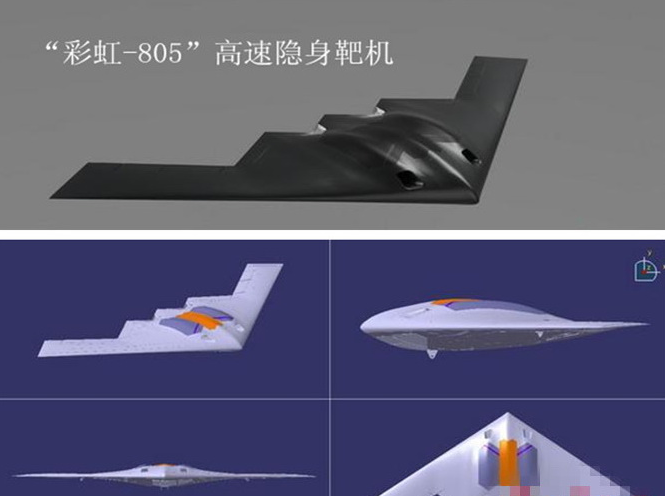 这样看来五角大楼押宝B21隐身战略轰炸机的计划就可以理解了。但是中国真的对美军隐身战略轰炸机束手无策吗?现在一款不起眼的新型装备“彩虹-805”高速隐身靶机曝光给出了明确答案,原来中国早有准备而且很充分。“彩虹-805”高速隐身靶机采用飞翼布局气动形式,具有优良的雷达隐身性能,能够用于模拟飞机飞行特性,协助新型对空武器的关键性技术验证和战术技术指标考核,也可用于一线部队的实弹演练。