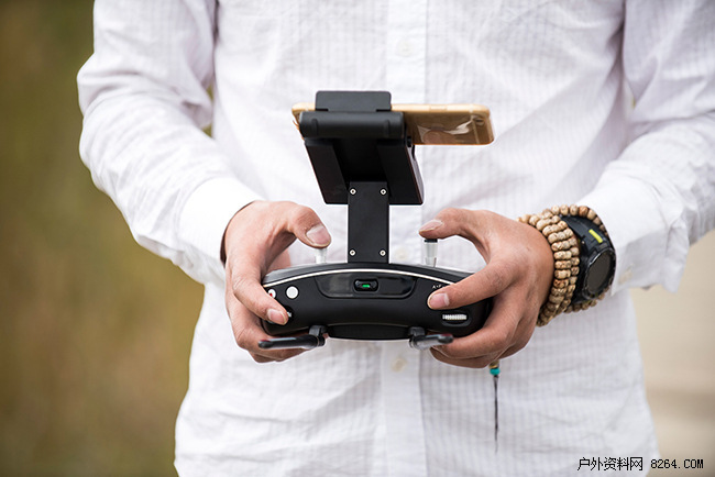 遥控器右上角为云台俯仰控制滚轮,左上角是有云台航向控制滚轮,都是采用了金属材质,具有一定的阻尼。遥控器的测评带有一键拍摄和一键录像的按钮。这里面有三个模式,较磁之前要通过这三个模式的切换来进行调节。P模式为GPS模式,带有定位的飞行模式,GPS信号为绿色时方可使用,不然是视觉声波定位模式。F模式为无头模式,A模式为姿态模式(老司机模式)。这里要单独提一下,显示器支架是可以从遥控器上拆卸下来,使用的时候在进行固定,支架的固定和显示器的固定都是采用了卡槽的方式固定。
