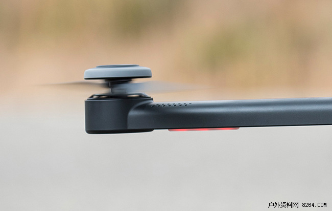 在机翼的下面都带有指示灯,用于飞机飞行前较磁以及显示飞机的飞行状态,不得不说指示灯也是超级炫的。其实从下图也可以看出来无人机超大的负载能力,机翼可以看清楚,而下面的草丛已经晃动的完全模糊了。