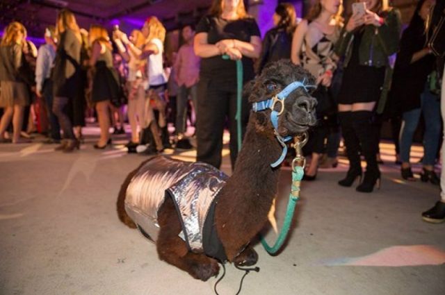 哦对了,为了感谢赞助商Zappos,时装秀现场还有一位惹眼嘉宾,那就是Zappos的代言人“羊驼先生”。它穿着一身银色衣服,大概是想营造出时装和科技结合的未来感。
