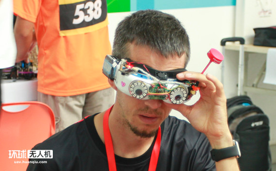 选手头戴一个内置显示屏FPV眼镜,无人机所带摄像头上拍摄的画面会实时回传到眼镜上。操作的感觉就像自己坐在飞机上一样。