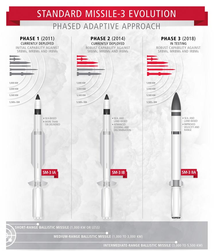 资料图:美国“标准-3”系列反导拦截弹发展演进及对弹道导弹拦截能力示意图。洛·马8月15日曾表示,该公司已签署为韩国海军3艘“世宗大王”级宙斯盾驱逐舰、美军一艘新型驱逐舰和日本海上自卫队两艘“爱宕”级驱逐舰装备宙斯盾“基线9”C1作战系统的合同,使其具备可发射"标准"-3 Block IB拦截弹的能力,可拦截射程3000公里以内的弹道导弹。合同金额达4.9亿美元。