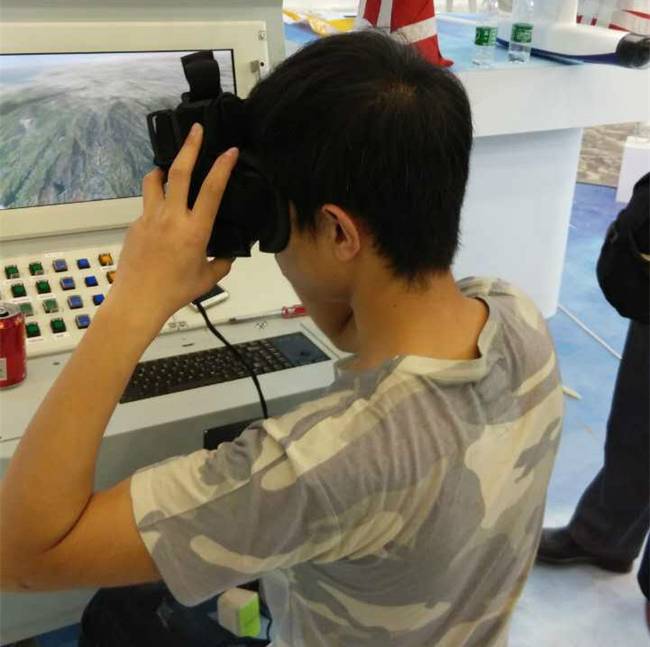 那么上述这些体系也好,无人机也罢,和VR技术又有着怎样的联系呢?谈到这个问题,请先看看这位正在测试系统的帅气小哥,他头上所带的设备就是WJ-600无人机操作系统所配备的VR头盔。现在,VR技术可以说是火爆全球,但主要都是集中在娱乐领域。其实,VR技术在军事领域也有巨大的作用。因为VR技术可以让使用者逼真的实时动态三维图像,并深度沉浸到该环境当中。而且除了视觉感知外,VR技术还包含有听觉、触觉、力觉、运动等感知,高级VR技术甚至还包括嗅觉和味觉等。在以往的无人机操作平台上,使用者要想转换观察视角,需要进行一系列的操作。而配备VR技术的WJ-600无人机操作系统,使用者想看哪里,只需扭扭头,视角就会所致变化,这些都是笔者亲眼所见。这以为着WJ-600无人机将真正化作使用者的眼睛,做到想看哪里看哪里,使得操作人员的视觉灵活性和准确性得到极大的提升,在瞬息万变的战场还有什么能比及时、有效、准确的情报更重要的事呢?所以说,结合了VR技术的WJ-600无人机,再配合上全域打击体系中的各种武器装备,让使用者真正拥有了发现即摧毁的能力。