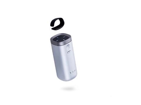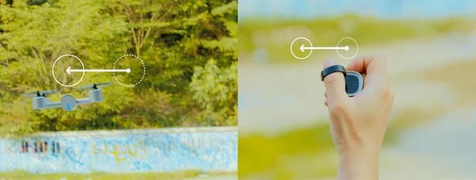 Shift 拇指手势遥控无人机的控制器十分小巧,有一个只有硬币筒那般大小的底座和一个套在拇指上的指环组成。通过移动拇指用户就可以控制无人机的飞行方向,拇指往左,无人机也将往左;拇指往上抬则无人机也将抬升它的高度;拇指缓缓放下,无人机也将降低飞行高度。